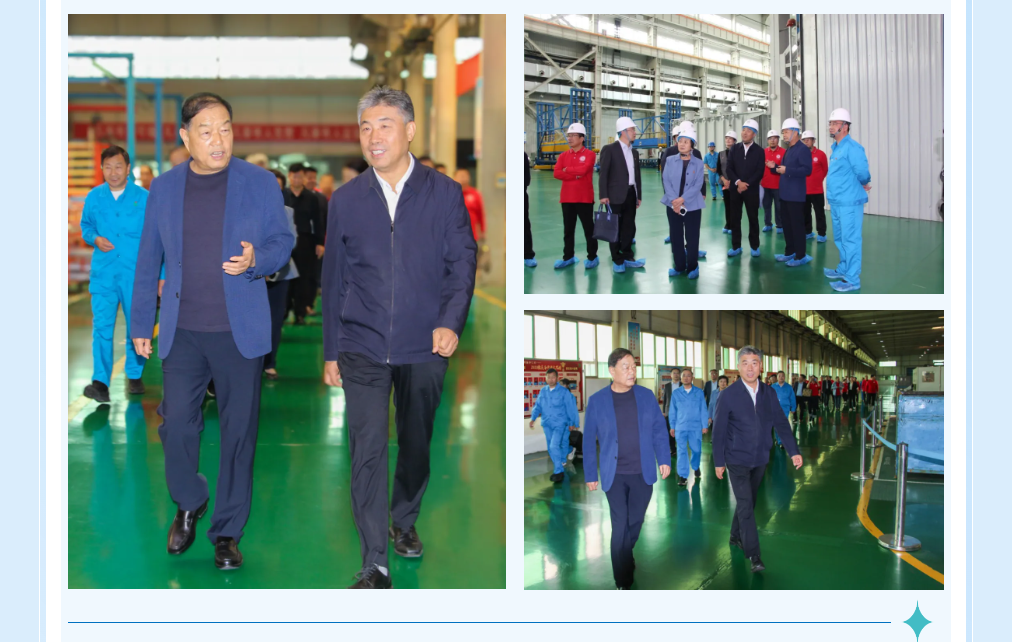 座谈会前,司林胜一行深入公司生产一线进行参观,详细了解AG亚游集团的发展历程、企业文化以及科技创新成果,他们对AG亚游集团智能化的生产线和高端装备制造能力表示高度赞赏。
